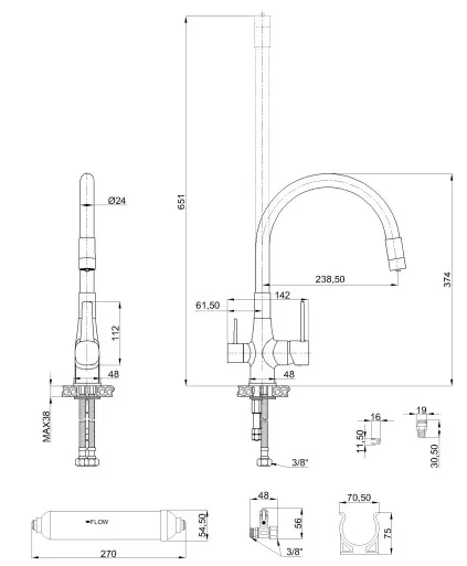 💧 Funkce dvou proudů – Baterie umožňuje přepínání mezi filtrovanou vodou a obyčejnou vodou z kohoutku. Díky tomu má uživatel pohodlný přístup jak k pitné vodě, tak i k užitkové vodě.
