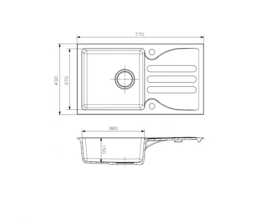 součásti dodávky: sifon s přepadem a odbočkou na myčku, úchytky pro uchycení k desce, šablona pro výřez