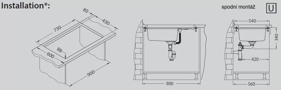 typ instalace: horní naložený, spodní montáž pod desku