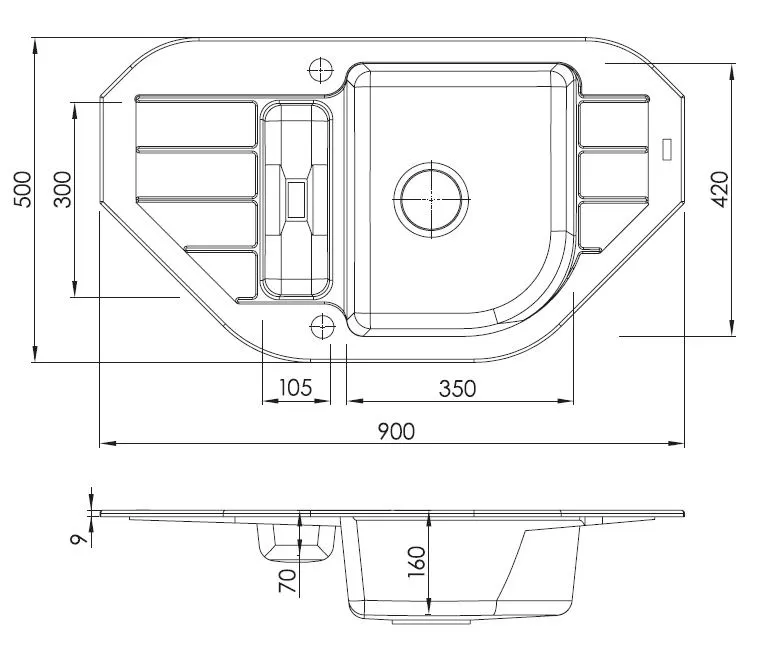 součásti dodávky: sifon pop-up s přepadem a odbočkou na myčku, excentrické ovládání výpusti, úchytky pro uchycení k desce