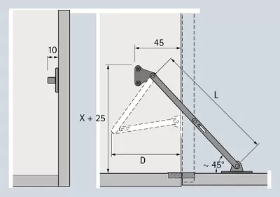 Sklopná dvířka musí být dole osazena závěsy pro sklopná dvířka, prosím, objednejte zvlášť