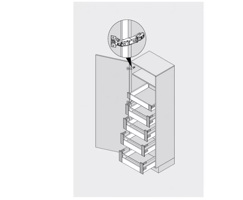 obsahuje veškeré kování pro potravinovou skříň s 1x nízkou a 4x vysokými šuflíky,