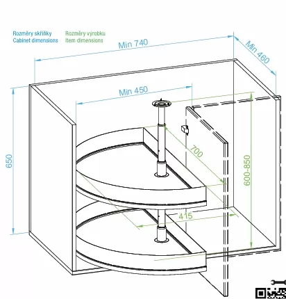 karusel 180° Style, 700x415x600-850 mm, antracit