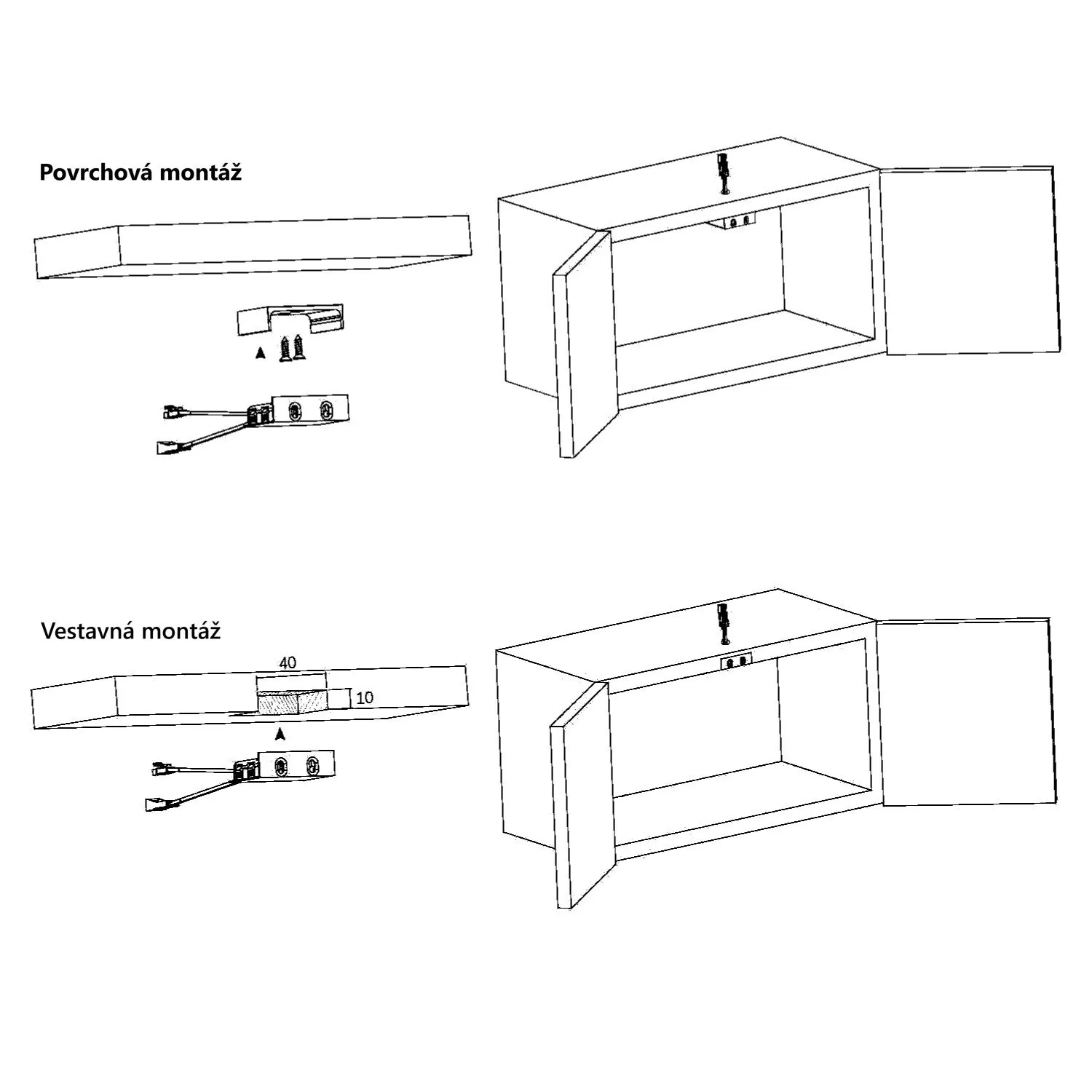 Vestavná montáž: Při sundání části určené na povrchovou montáž lze nainstalovat ovladač do vyfrézované části nábytku.
