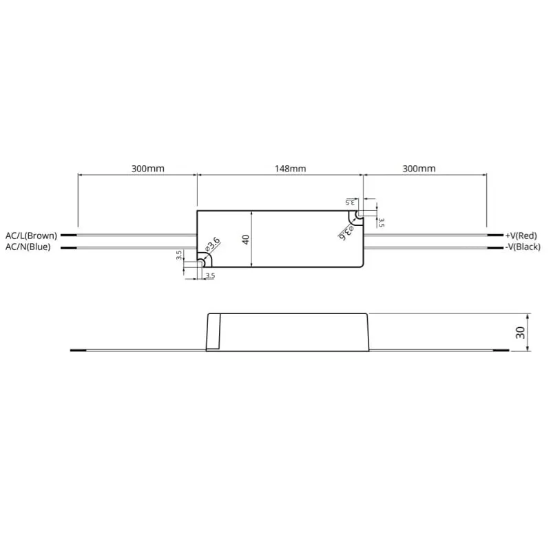 rozměry: 148x40x30mm 60W ; 163x43x32mm 100W ; 190x52x37mm 150W ; 190x63x38mm 200W