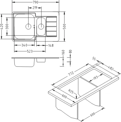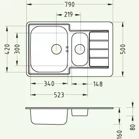 vnitřní rozměry dřezu: 420x340/300x148mm