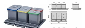 Odpadkový koš do šuplíku 800, 2x15 l + 2x7 antracit