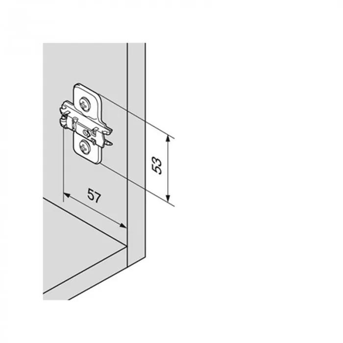 Podložka základní křížová s předmontovanými hmoždinkami. Přednastavené vruty se zašroubují do hmoždinek, které roztrhnou a tím se podložka upevní. Jedná se o nejpevnější možné spojení kování+DTD.