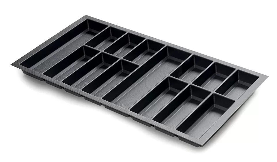 Příborník Kristall softTouch 100 (922 x 474 mm) v provedení Kristal soft Touch v barvě černé. Rozměry odpovádají rozměrům Legrabox v hloubce 500mm pro skříňku 1000mm