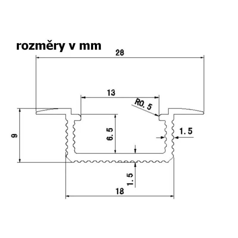 LED profil V5 vestavěný š.pásku 13mm 2bm - různé barvy