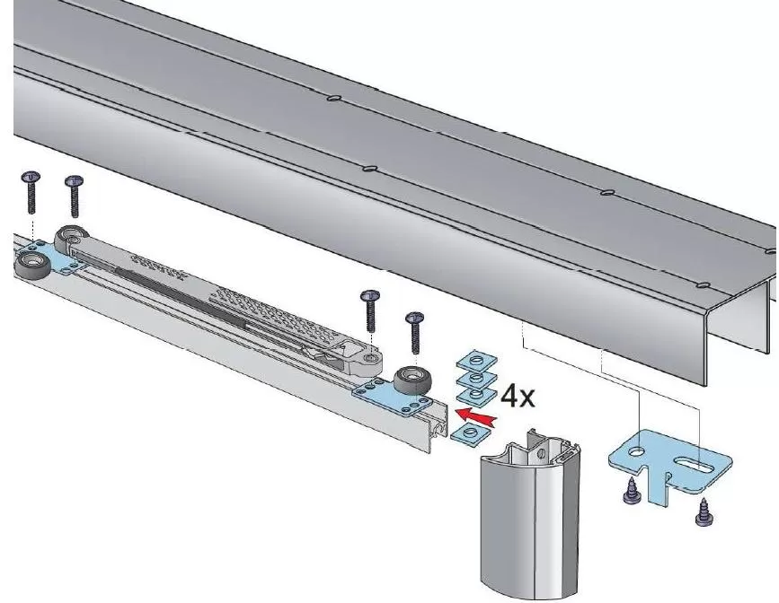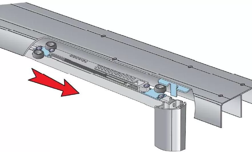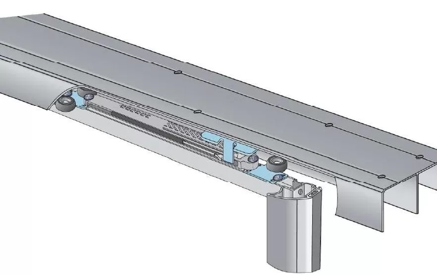 Dveřní dovírač má umístěn dovírací mechanismus před integrovaným horním vozíkem. Tím je na nejvyšší možnou míru zaručeno výškové seřízení dveří, protože dovírací mechanismus zabírá minimální prostor nad posuvnými dveřmi.