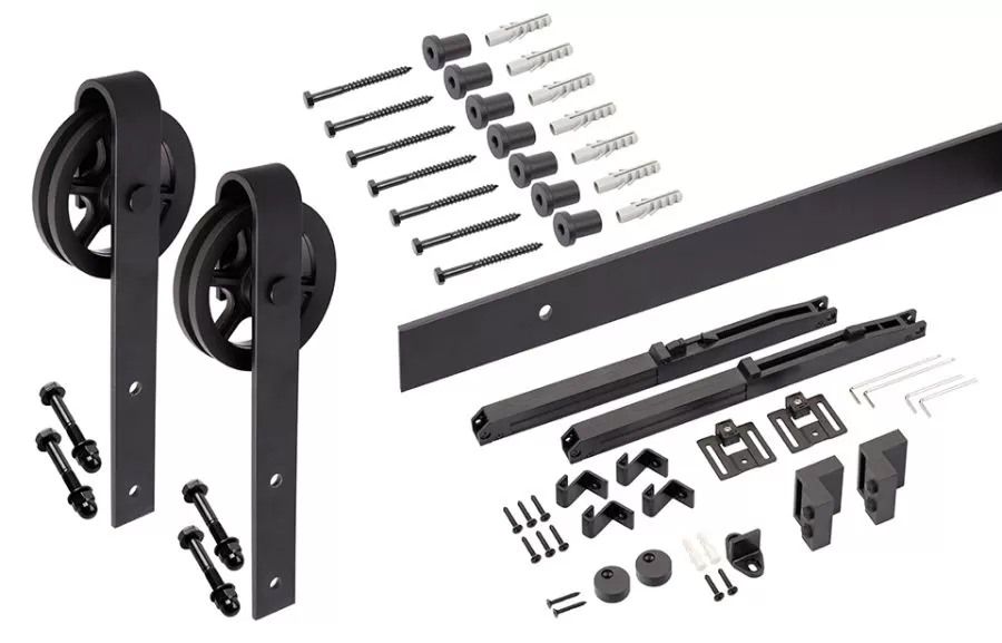 Sada kování pro horní vedení rustikálních dveří.
