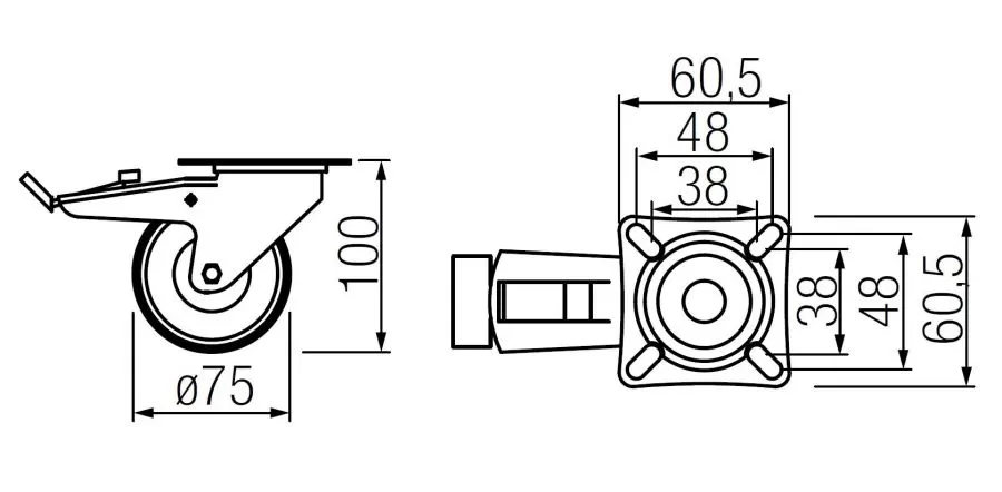 Kolečko otočné Tente s brzdou guma průměr 75mm