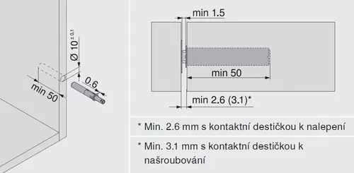 vysunutí cca 17 mm Včetně kontaktní destičky k nalepení a kontaktní destičky k našroubování . Dráha seřízení + 4.0 / - 1.0 mm