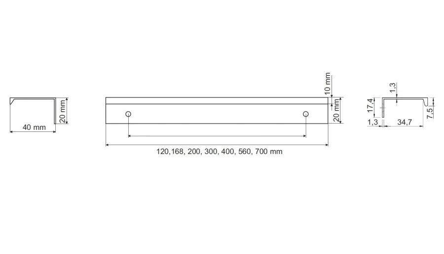 úchytka kov na hranu černá č.680 (různé délky)