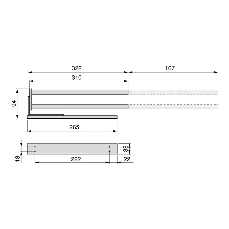 věšák výsuvný na utěrky L310mm, 2 ramena - STŘÍBRNÝ