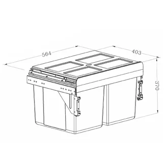 výsuvný odpadkový 2-koš s úchyty dvířek, 2x27 l,antracit/600