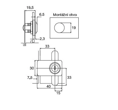 Zámek slouží k uzamykání dvou skleněných křídel do půdy nebo dna korpusu.