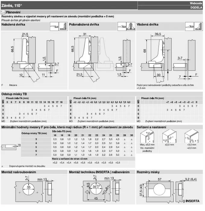 úhel otevření 110°