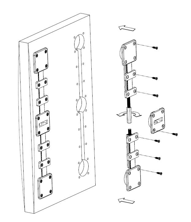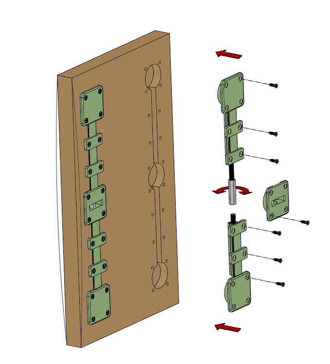 Použití: rozpínací kování zabraňující prohýbání skříňových dveří.