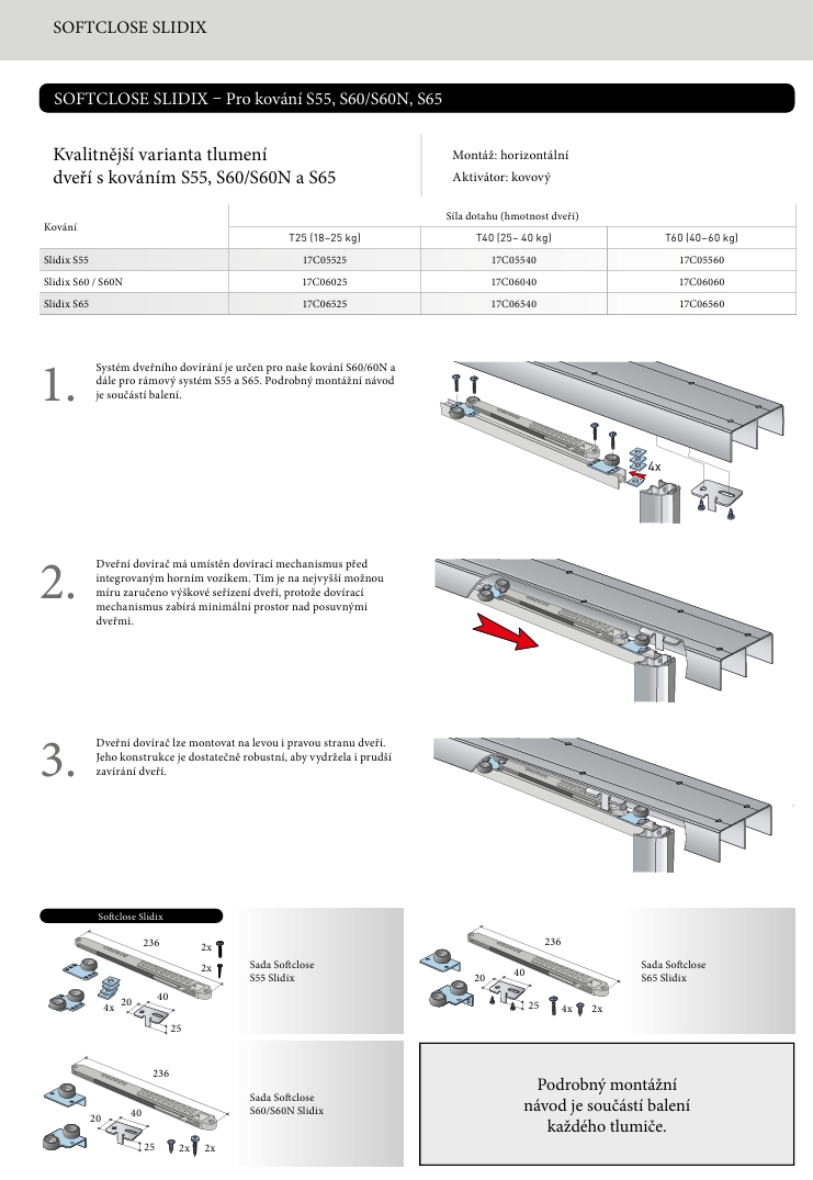SOFTCLOSE - tlumič posuvných dveří SLIDIX S60N
